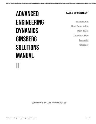 Download ADVANCED ENGINEERING DYNAMICS GINSBERG SOLUTIONS MANUAL Hardcover Library Genesis